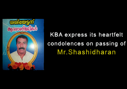 KBA express its heartfelt condolences on passing of Mr. Shashidharan